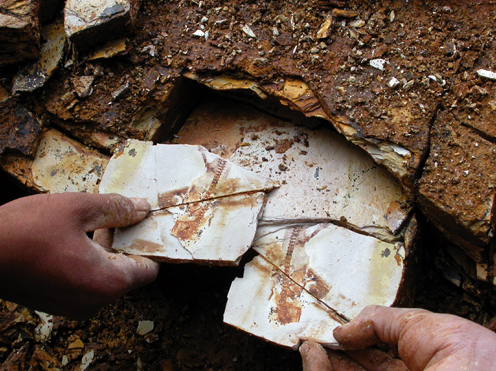 所以,在采集化石时首先要观察化石的埋藏情况。比如在采集蛋化石时,要观察是一个蛋还是两个蛋。如是两个蛋,它们是否紧靠在一起?如果是,就有可能是恐龙所生的蛋,因为恐龙长有双输卵管,它们一次下两个蛋。此外,还要看看蛋是如何排列的,是排成一排排,还是呈放射状排列,或螺旋状放射排列,或杂乱无章地排列……不同的恐龙,蛋的排列方式是不同的。当然还要观察化石周围的岩石特征,判断当时的埋藏环境。比如,可以看看蛋化石是产在红色砂土中还是土黄色砂土中,此处有没有伴生的其他化石,地层是水平的还是倾斜的。