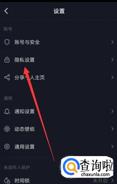 进入之后,点击“隐私设置”,进入下一页面,如图所示。