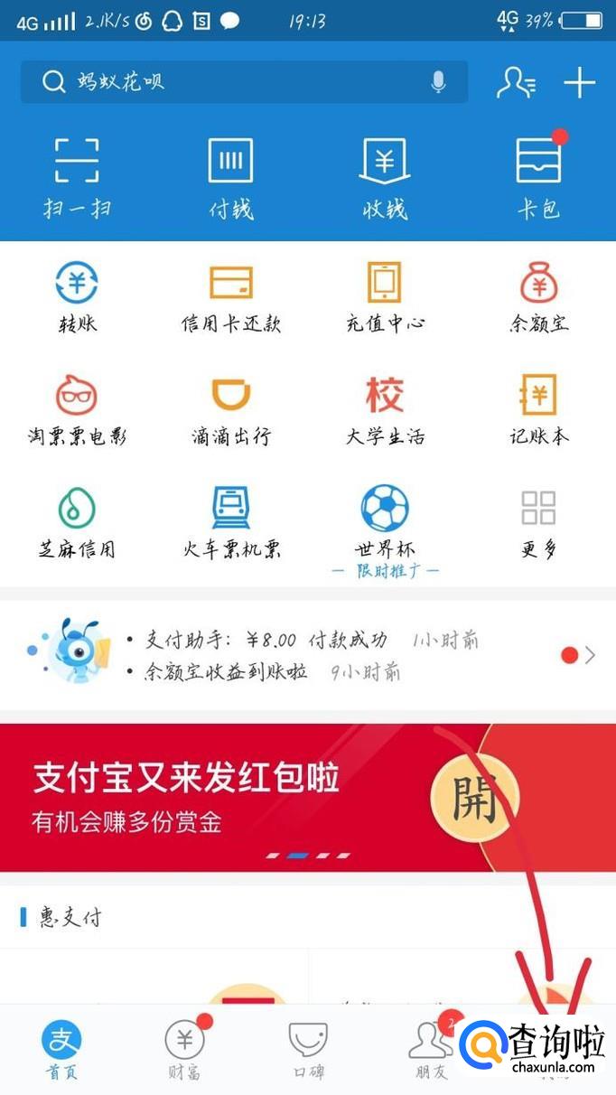首先打开支付宝这个app,如图1所示。进入支付宝后会看到一个新的界面,如图2所示。