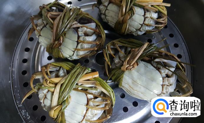 将装好盘的螃蟹放入蒸格中,蒸15~20分钟,至蟹壳呈鲜红色,蟹肉成熟时,取出准备食用。