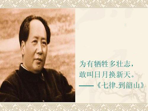 “红旗卷起农奴戟,黑手高悬霸主鞭。”韶山人民高举着革命的红旗,武装起来与反动派进行斗争,八年抗日战争,三年解放战争,韶山的人民从来没有畏惧。一方面是韶山的人民高举起红旗为自己的解放而斗争;一方面是反动派高举起霸主的铁鞭,对革命的人民进行血腥的镇压。韶山人民与反动派的斗争是一种你死我活的斗争,是根本没有调和的余地的。他们从不气馁,从不退让,从不妥协,心里坚信一个真理:“为有牺牲多壮志,敢教日月换新天。”韶山的先烈们牺牲了,但是他们的血没有白流,他们的鲜血换来了革命的胜利,换来了社会主义的新天地,他们为无产阶级革命作出了何等伟大的贡献啊!过去了,旧社会的苦难的生活终于过去了,蒋介石的黑暗统治过去了,一切封建剥削制度都过去了,都成了历史的陈迹了。