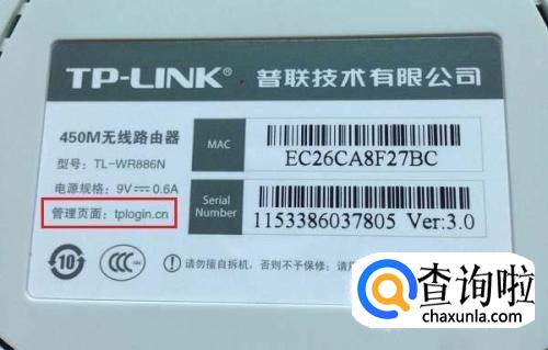 在路由器底部标签上查看,如下图所示位置。