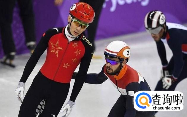 短道速滑男子1000米预赛第六组,韩天宇小组第一,结果被罚犯规出局