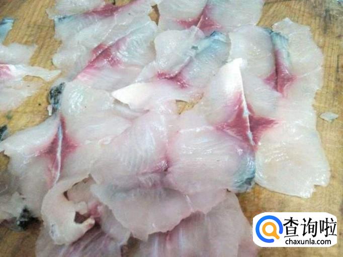 将脆鱼洗净,切成鱼片,放入料酒、盐、酱油一起腌制,腌制半个钟头。