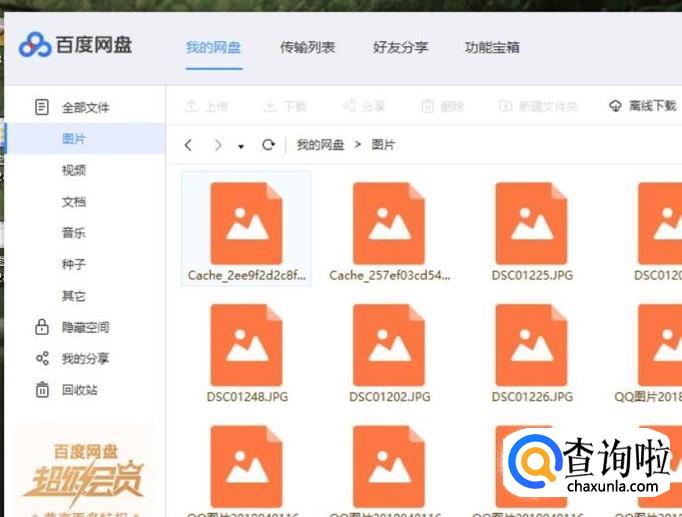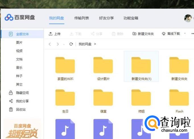 登录百度网盘,然后你可以查看我的网盘,这里面可以放任何你想存的东西,只要建好文件夹,操作很简单。