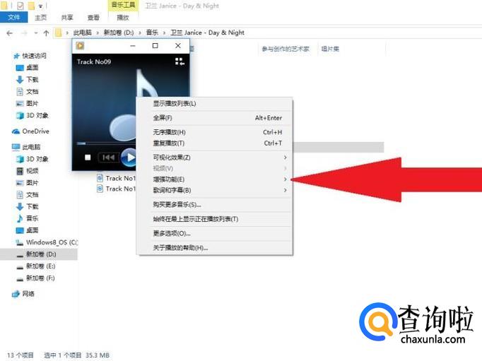 接下来右击播放器界面的中心位置,在弹出的菜单中单击进入“增强功能”。
