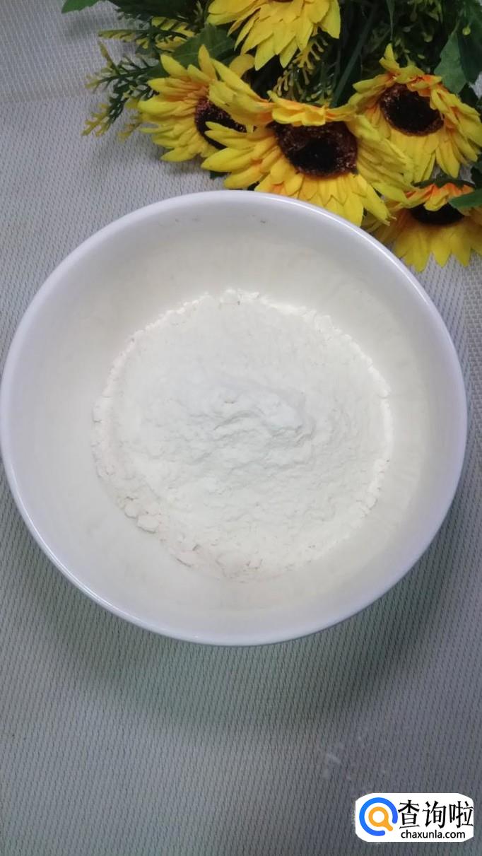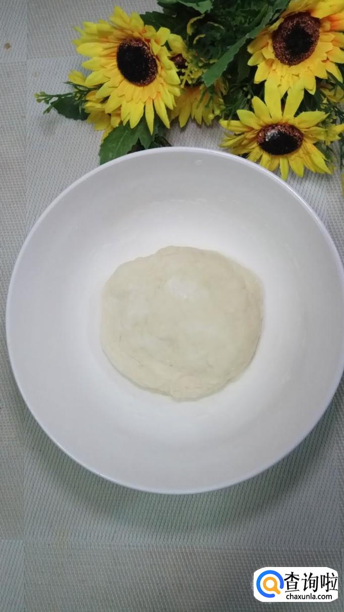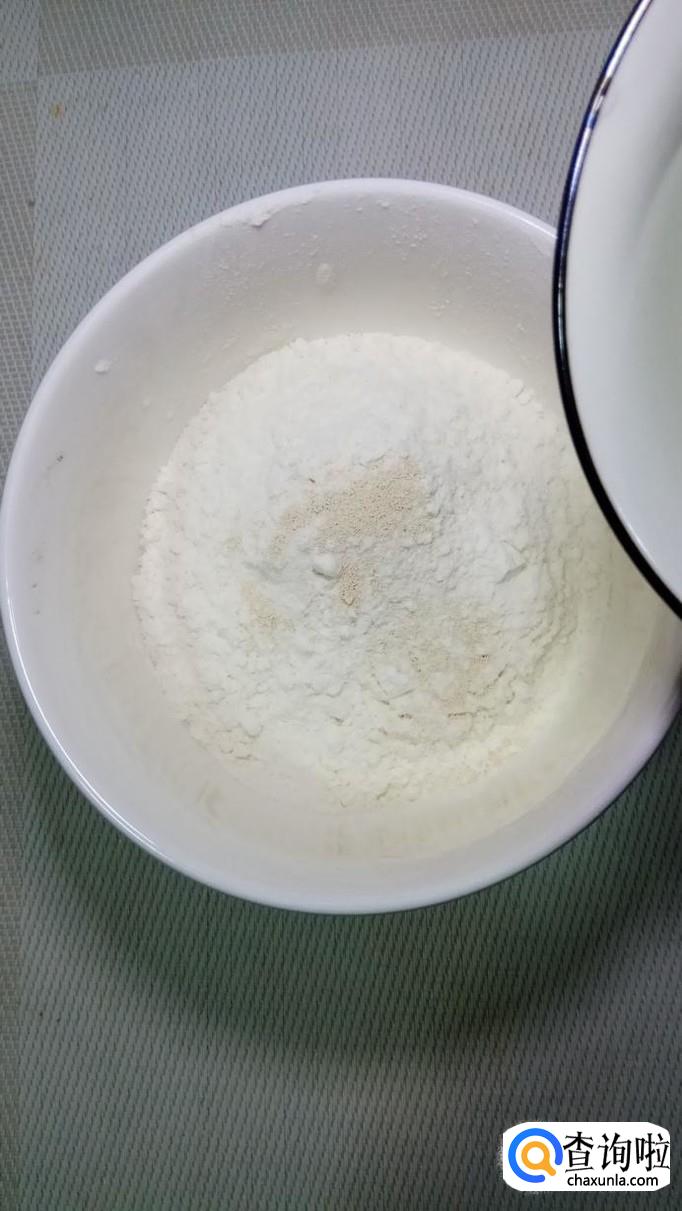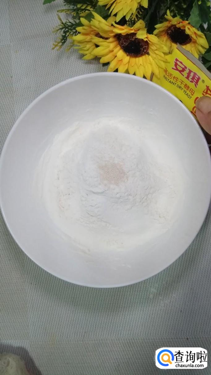 准备一个大碗,碗中放入适量面粉,再加入适量酵母粉,用少许的清水和成光滑的面团。