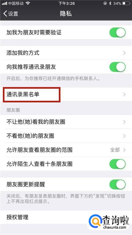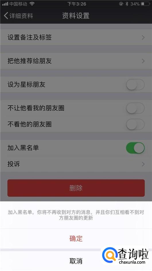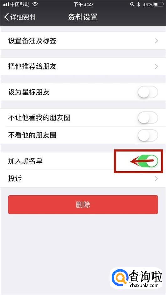 接着点击开启加入黑名单右侧的开关,如下图所示。