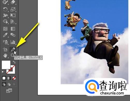 鼠标移到界面左侧的工具栏,点击切片工具,调出切片工具;也可以按快捷键SHIFT+K调出切片工具。