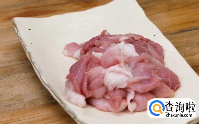 首先,准备好去皮的二刀肉,切成肥瘦相连的薄片,大概比一元硬币稍微厚一点即可。