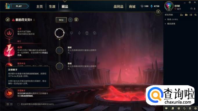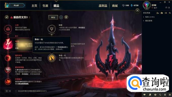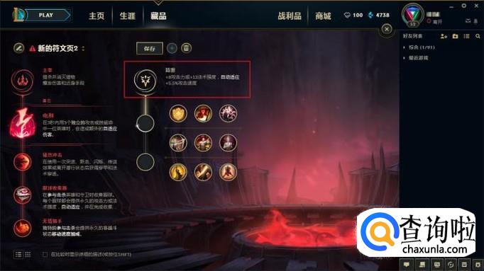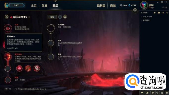 主系符文第二个选择猛然冲击:该符文能使劫在使用W第二段、R和闪现时提供持续5秒的10穿甲,以更容易地打出高伤害。