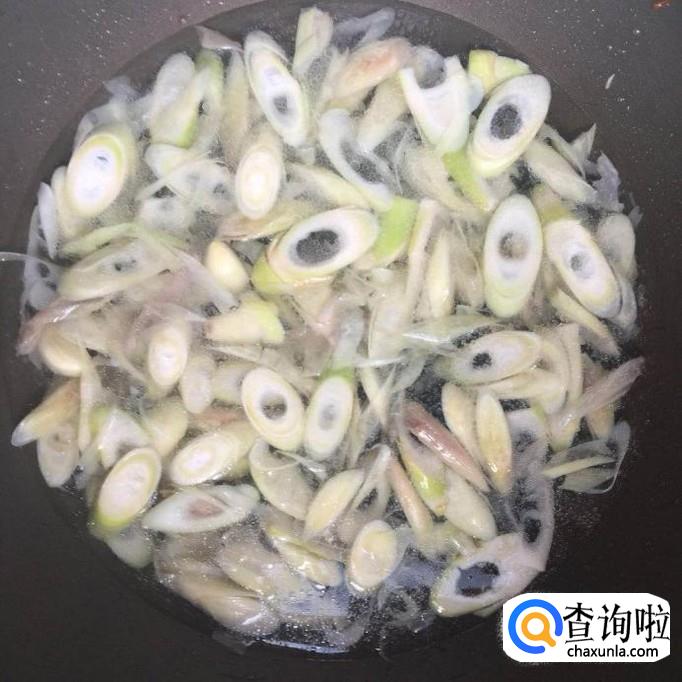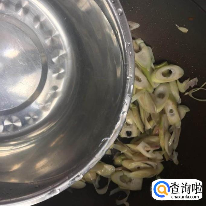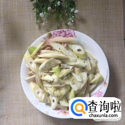 然后把新鲜的苦笋切成片,倒入锅中翻炒五分钟。