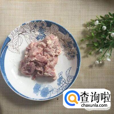 接着把瘦肉切成薄片并用适量的地瓜粉裹一下。