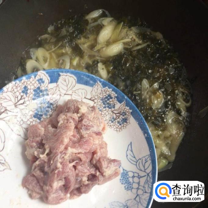 然后把处理好的瘦肉倒入锅中,开大火煮三分钟。