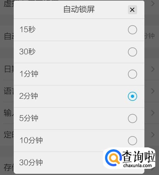 在弹出的对话框内选择合适自己需要的自动锁屏时间就可以了。