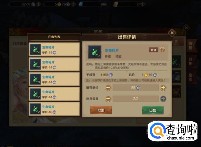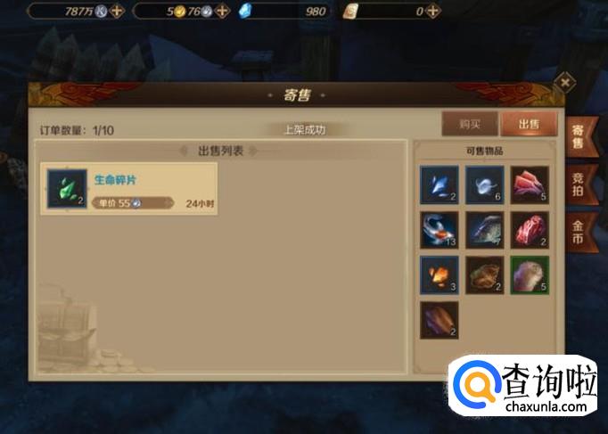 这样就成功上架了该物品了,上架成功后,此时别的玩家就可以通过【交易行】来向我们购买物品了。