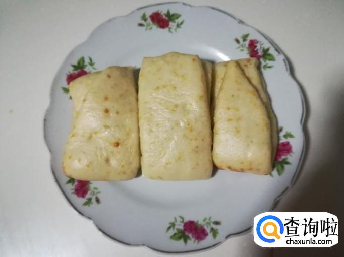 然后出锅装盘,这样圆白菜蒸饼就做好了。