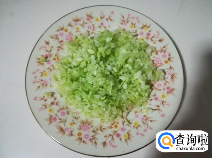 把圆白菜洗净,切成碎粒放盘里。
