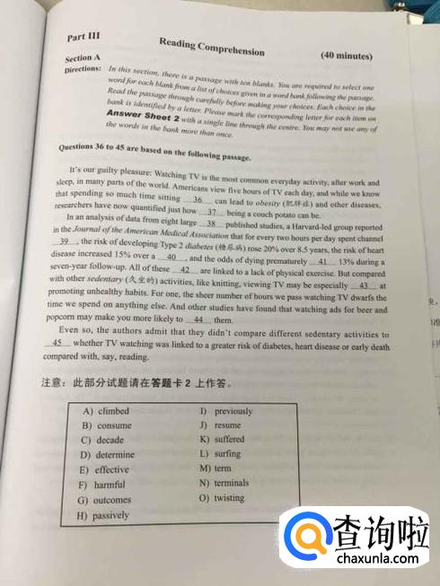 另外词汇量也是很重要的一部分,可以有效提高阅读和听力能力,考试前三个月每天背二三十个陌生单词。