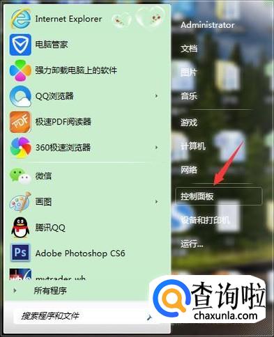 点击电脑桌面左下角Windows键,在弹出的选项中选择控制面板