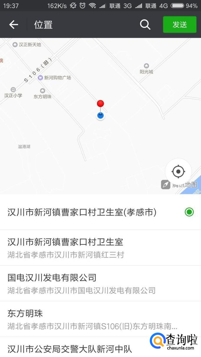 接下来,在页面显示的位置信息中,点击选择要发送的位置信息。