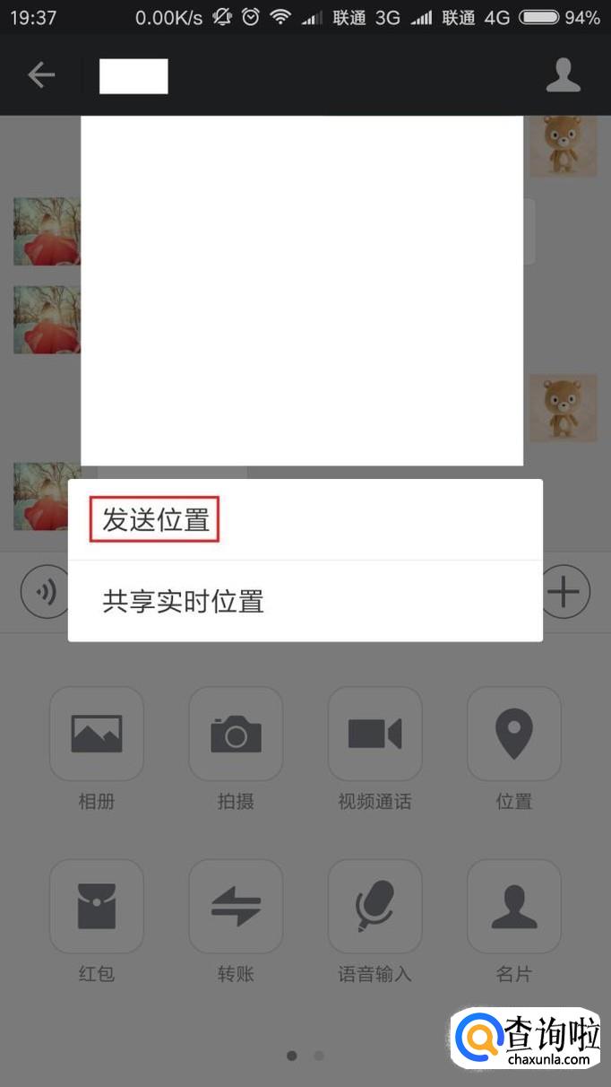接下来,在弹出的页面中,点击“发送位置”菜单选项。
