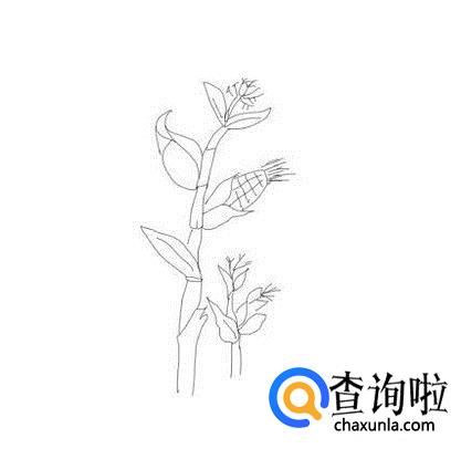 首先我们画出玉米的秸秆,并在上面画出叶子,如图所示: