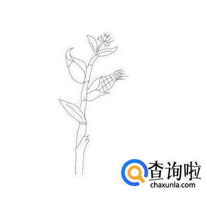再在这个玉米的秸秆上再画出秸秆上结出的大玉米,如图所示: