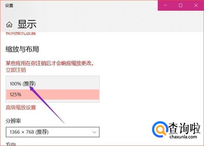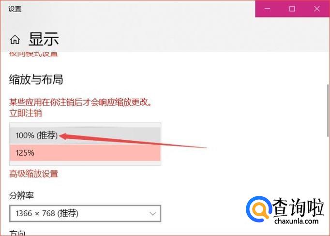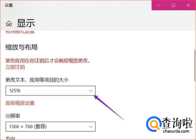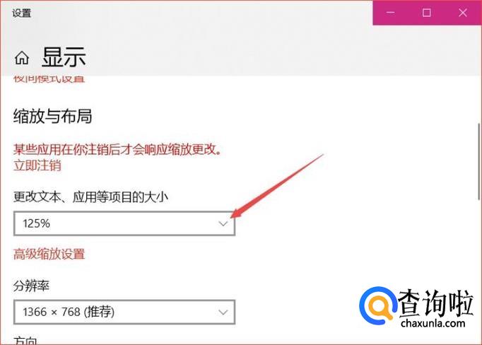 然后点击更改文本、应用等项目的大小边上的下拉箭头;