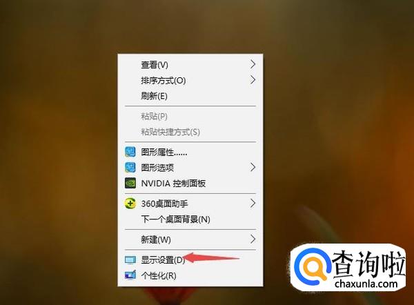 其实还有个更加简单的方法,直接右击选择显示设置;