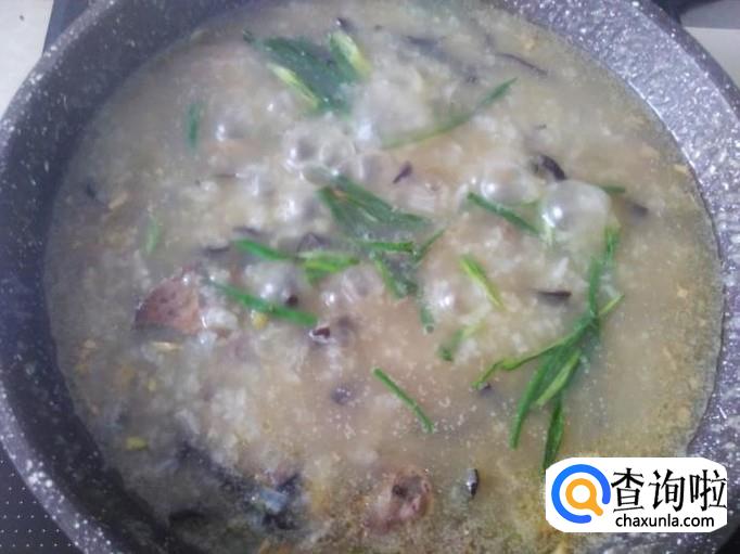 加香葱丝搅拌均匀熄火,鲜美好吃的木耳鸡肝粥就做好了。