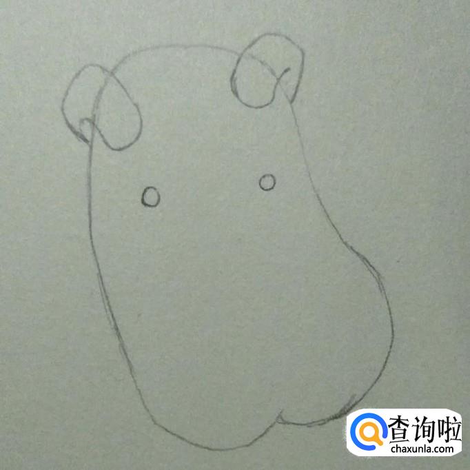 然后画出另外一只耳朵,耳朵画好后,在小狗面部三分之二出画两个小圆圈,作为小狗的眼睛