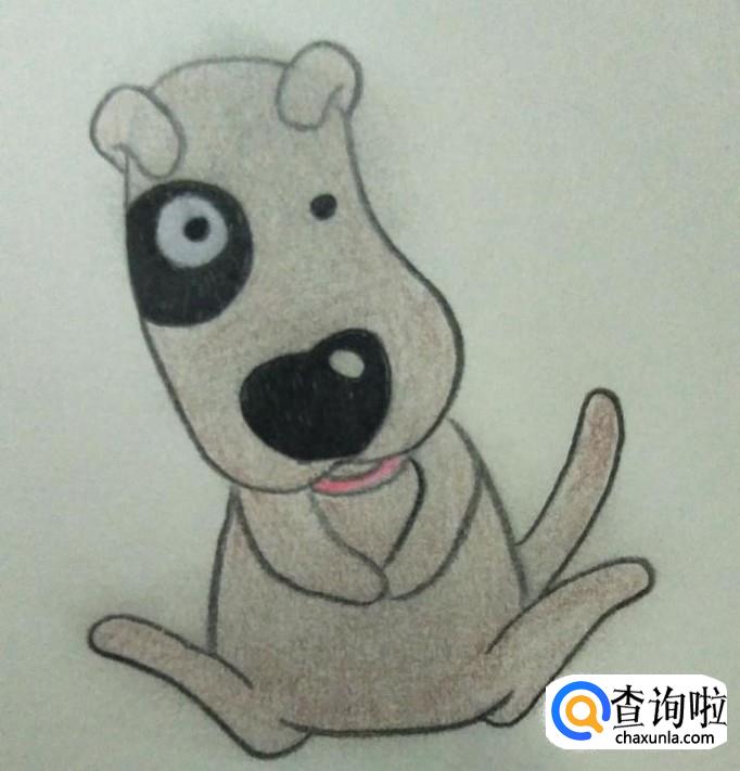 最后我们用棕色彩笔轻轻描摹小狗的身体,再用粉色彩笔涂其脖子出两条线间的空白处。这时小狗的绘画已经完成了,是不是很漂亮?方法是不是很简单?