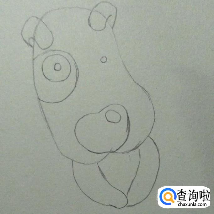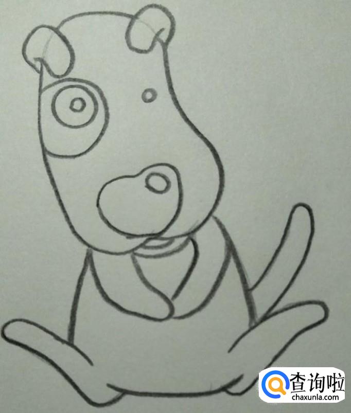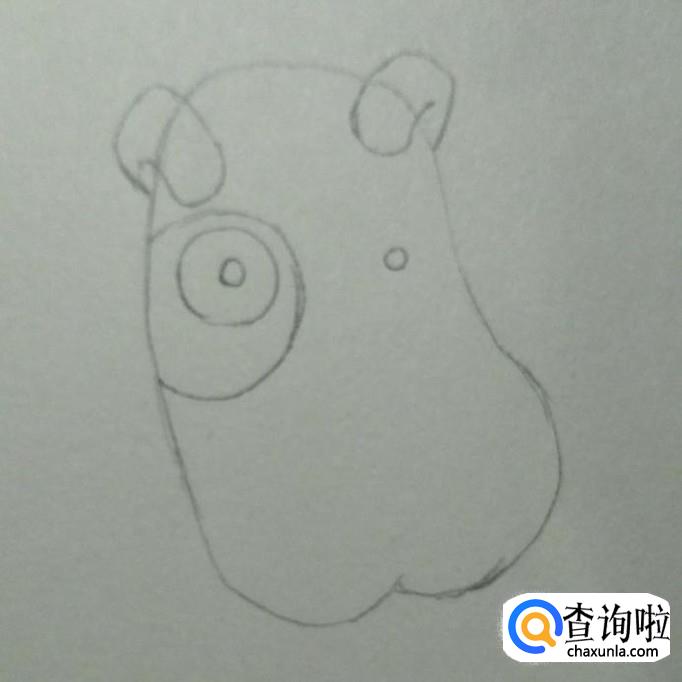 当然光是小圆圈不能突出小狗的眼睛,所以我们在小狗右眼处,再在小圆圈外画出一个稍大一点的圆圈,再然后与头部相连在两圆圈外画出一个三分之二的圆弧,这样才更加逼真。