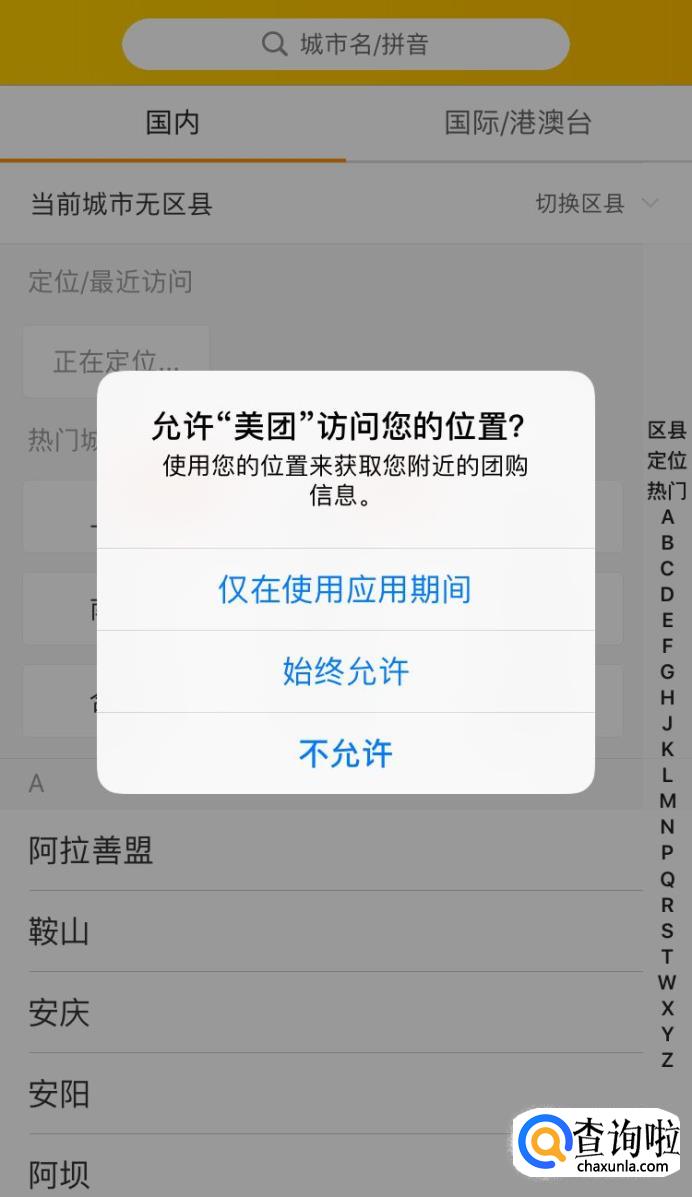 登录时会提示是否允许访问地址,点击允许或在使用期间允许都可以,点击之后系统会自动定位你所在的城市。