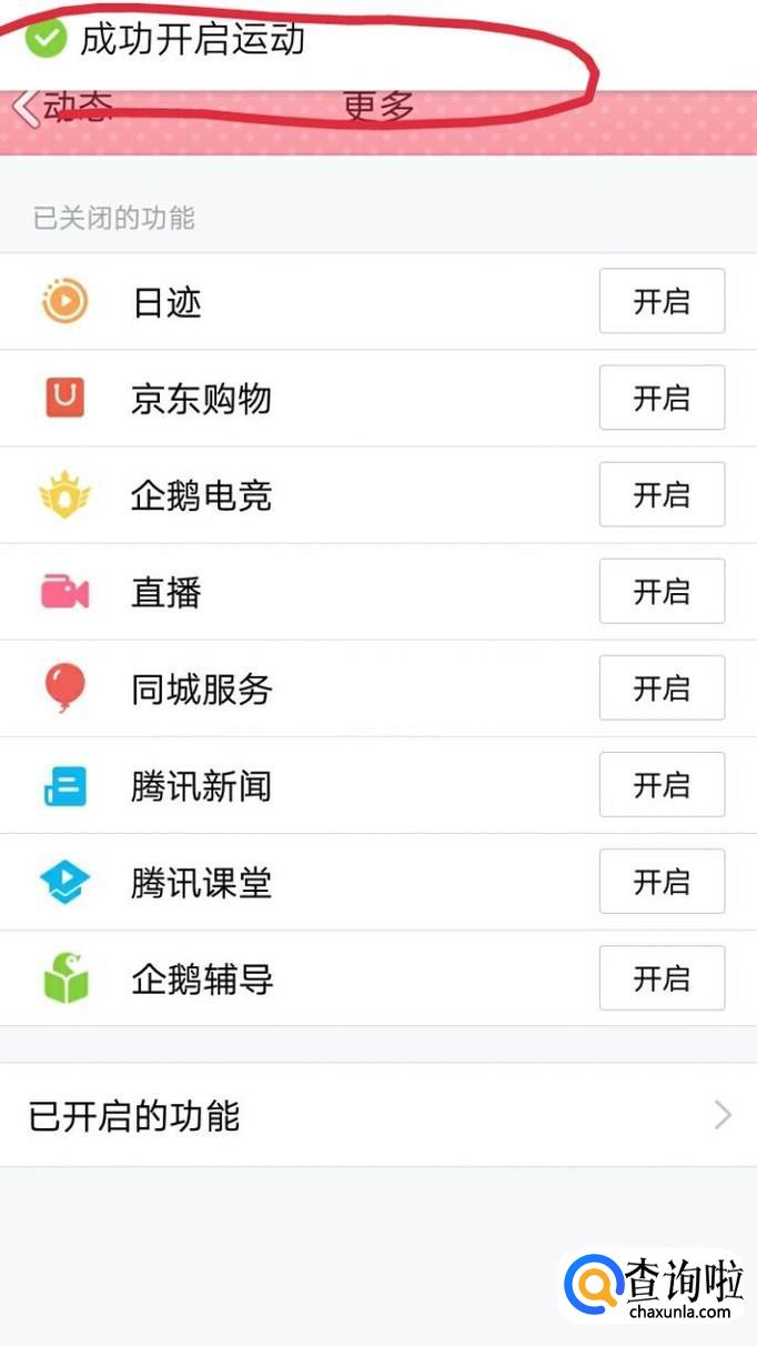 然后在界面的上端会出现一个成功开启运动的界面,如下图所示。