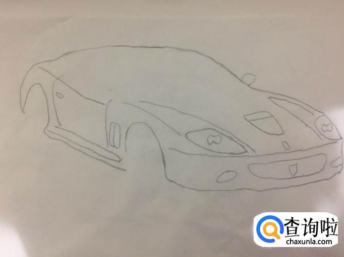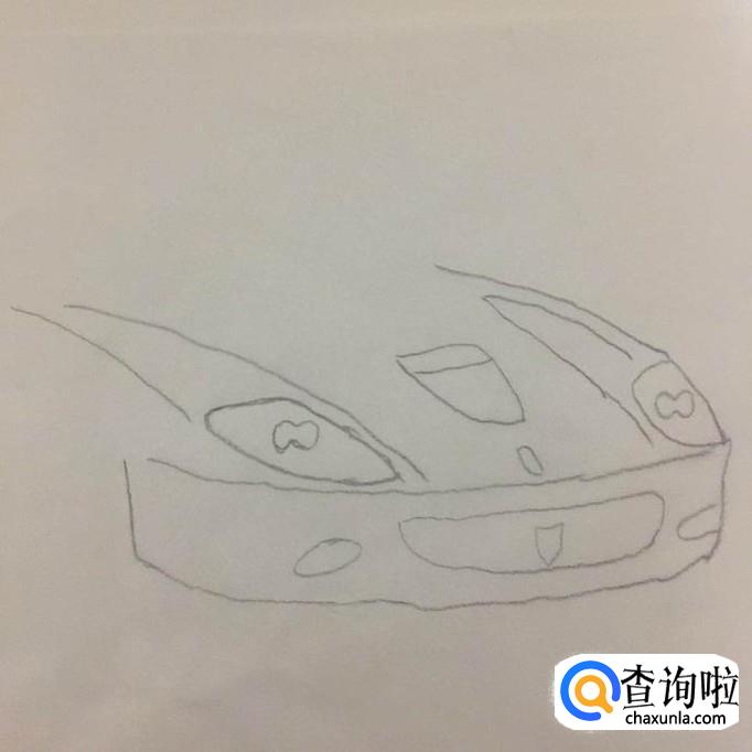 首先用铅笔在A4纸上画出跑车的车灯部分,如下图所示。画质部分的时候要特别注意的是,要控制好它的大小。