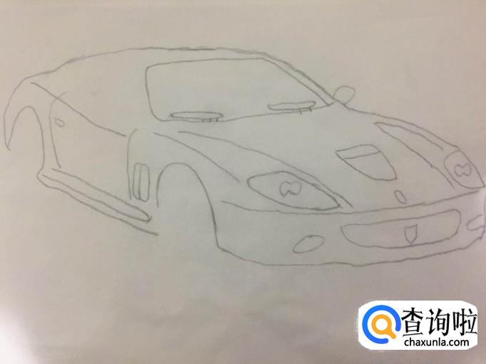 接着画出跑车的引擎盖,如下图所示。画这部分时候,只要用铅笔轻轻勾勒出一些线条就可以了。