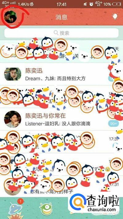 然后,我们在消息页面继续向左滑动,或者点击左上角的QQ头像。