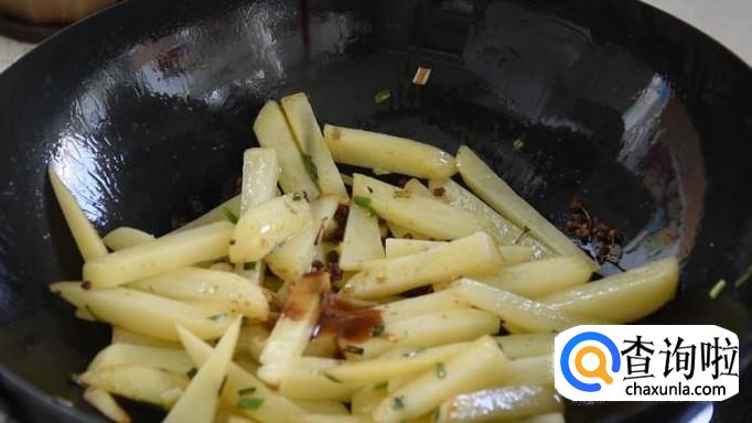 干煸和翻炒土豆条的时间不易过长,时间长了土豆条就变面了,吃起来就不脆了
