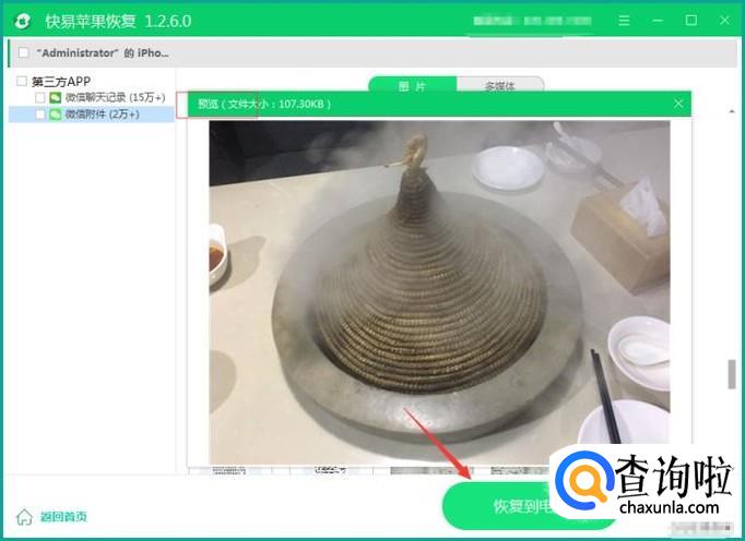 进入查看详细的附件图片,还可以从聊天记录中查看有没有要的图片,记得在恢复之前先预览查看图片是否是大图,预览出来的样子就是恢复出来的样子。