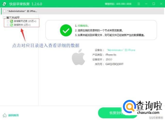 等待扫描完成后,点击左侧目录,选择微信附件。