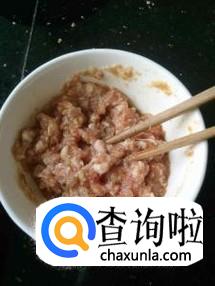 挑选猪肉适量,用刀剁碎,采用的猪肉要肥瘦相间,做出来的口感才好,加入鸡蛋,盐,蚝油,黑胡椒粉,白砂糖,香油,少量水葱和姜切成末,拌入肉末中,搅拌到肉有粘性之后静置半个小时。