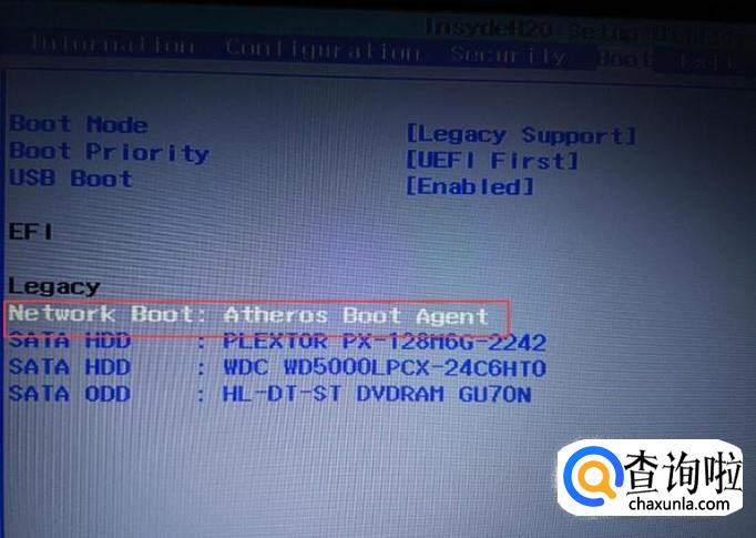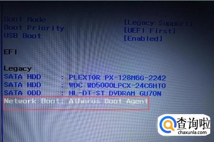 Boot设置页面打开之后,可以看到,当前Boot设置第一启动项为Network Boot,所以在开机的时候会默认从网卡启动,出现了该页面的信息提示。