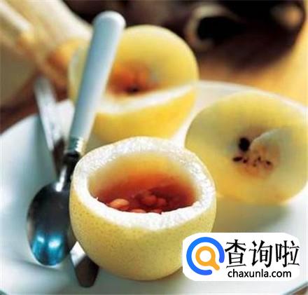 雪梨一个去核挖空内里,川贝粉末放进去,加上三四粒冰糖,隔水蒸熟,放凉之后吃梨喝汤。