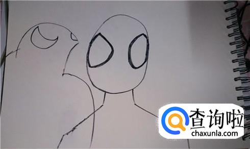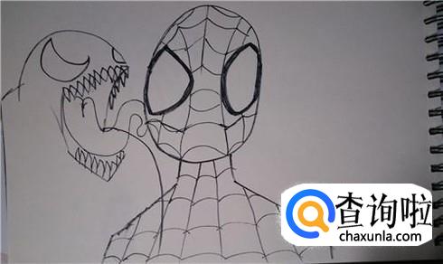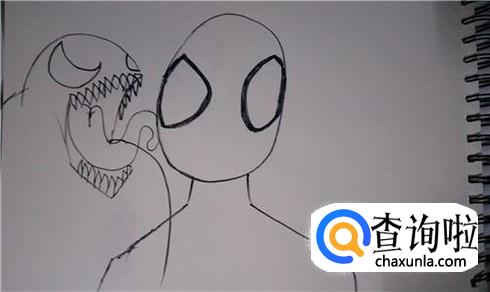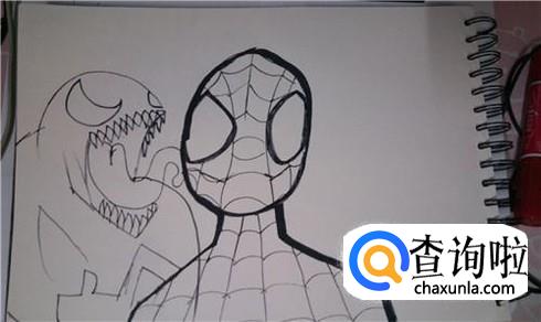 先画出毒液和蜘蛛侠的大致外形,这里毒液要伸出他的舌头,所以画头部的时候要留出舌头的位置。