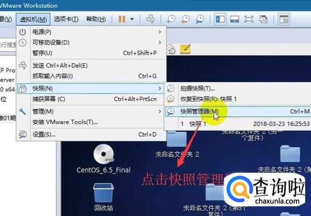 接下来如果想用的时候只需要点击虚拟机菜单,然后选择快照下面的快照管理器,如下图所示