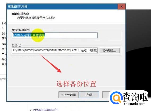 接下来需要设置一下克隆的位置并给克隆备份的系统起一个名称,如下图所示