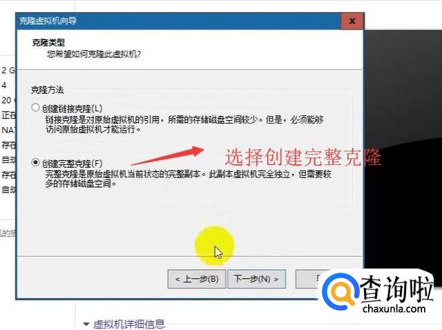 然后进入克隆类型选择界面,这里选择创建完整克隆选项,如下图所示