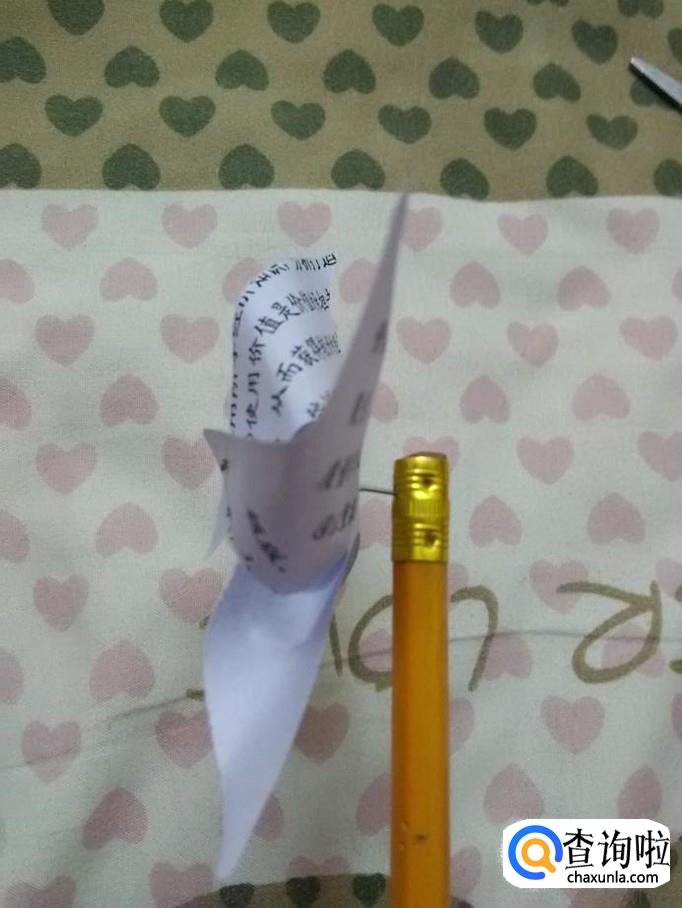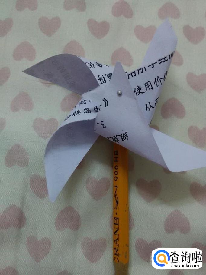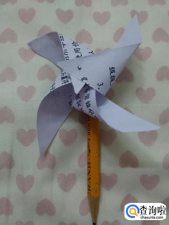 把大头针扎进铅笔里面,用铅笔当风车的杆子。